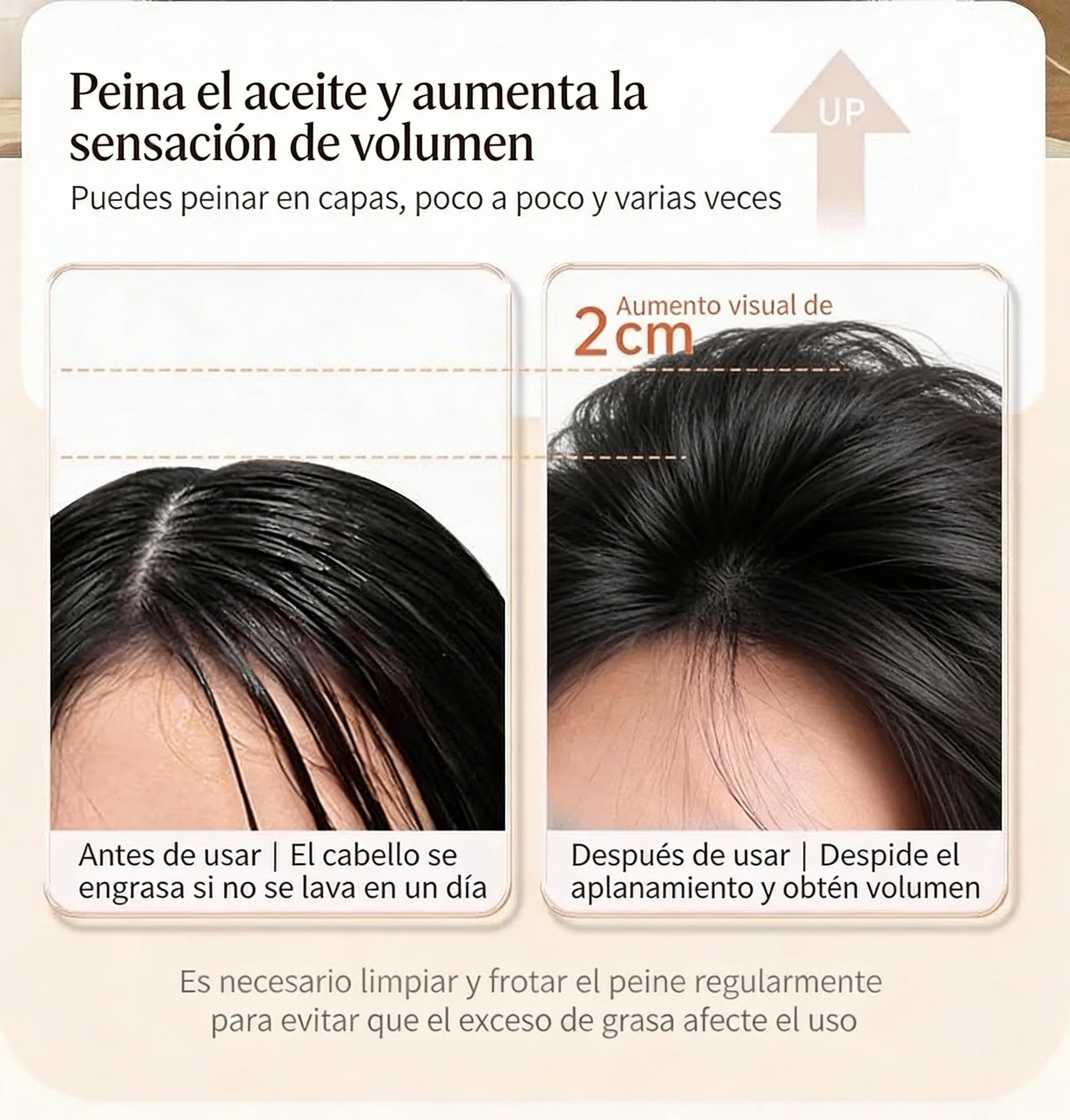 Para mejores resultados, úsalo mañana y noche durante 2-3 minutos cada sesión. Si tu cuero cabelludo es especialmente graso, puedes usarlo a lo largo del día según lo necesites.