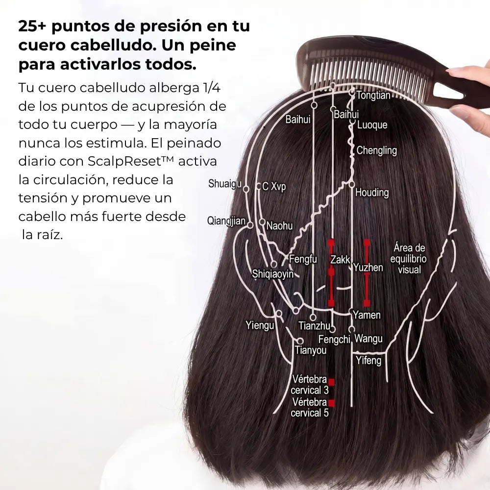 Activa los circuitos de circulación en los puntos clave del cuero cabelludo — promoviendo un crecimiento del cabello más fuerte y saludable con el tiempo.