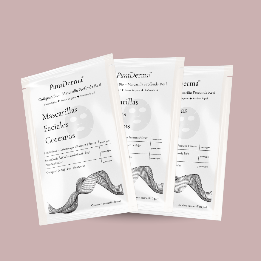 Mascarillas profundamente nutritivas con colágeno de salmón y PDRN para mejorar la elasticidad y luminosidad de la piel.